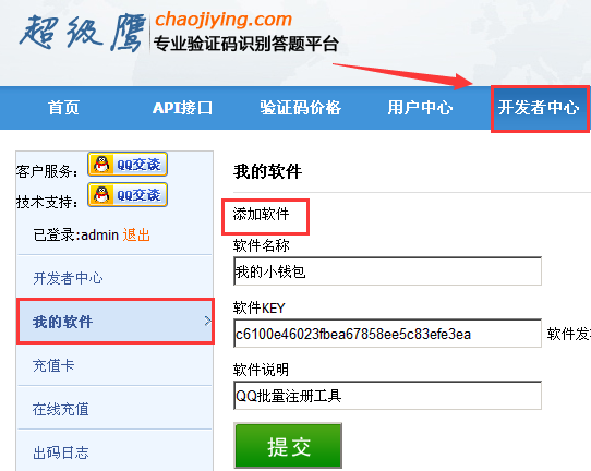 软件ID号用于软件分成,在软件上传验证码时做为参数上传.